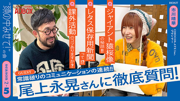 CHOCOLATE社のプランナー、クリエイティブディレクター市川晴華がファシリテーターとなり、注目のクリエイターの発想法、仕事術に迫る90分。Season2の第5回ゲストは、電通のプランナー/クリエイティブディレクター 尾上永晃さんです!