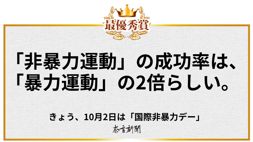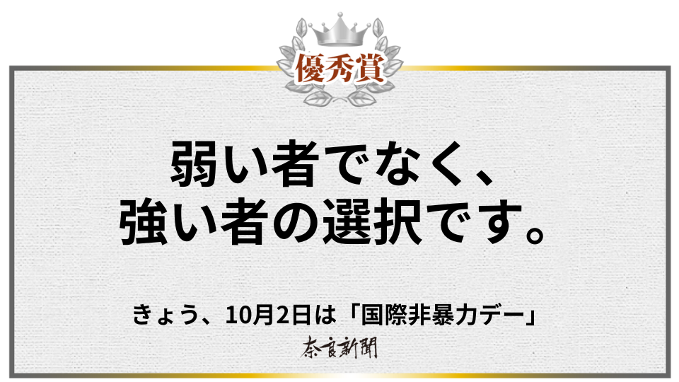 課題「10月2日『国際非暴力デー』に非暴力の意味・意義を考えらえる新聞広告」のファイナリストと入賞作が選出されました。